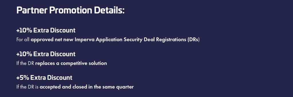 Help your customers stay ahead of evolving cyber threats while increasing your profitability. For a limited time, Thales partners in EMEA can earn up to 25% additional discount when registering and closing Imperva Application Security deals.